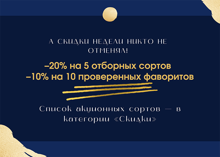 Весь список сортов ищите в разделе “Скидки” на сайте.